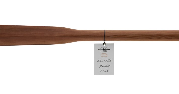 La #132 è una splendida pagaia, leggera, lavorata da tavole di cedro rosso del Jura francese a fibra estremamente compatta.